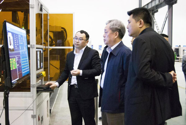 科技部黨組成員郭向遠(yuǎn)仔細(xì)詢問嘉泰數(shù)控關(guān)節(jié)機(jī)器人、智能在線檢測以及數(shù)字化工廠的細(xì)節(jié)